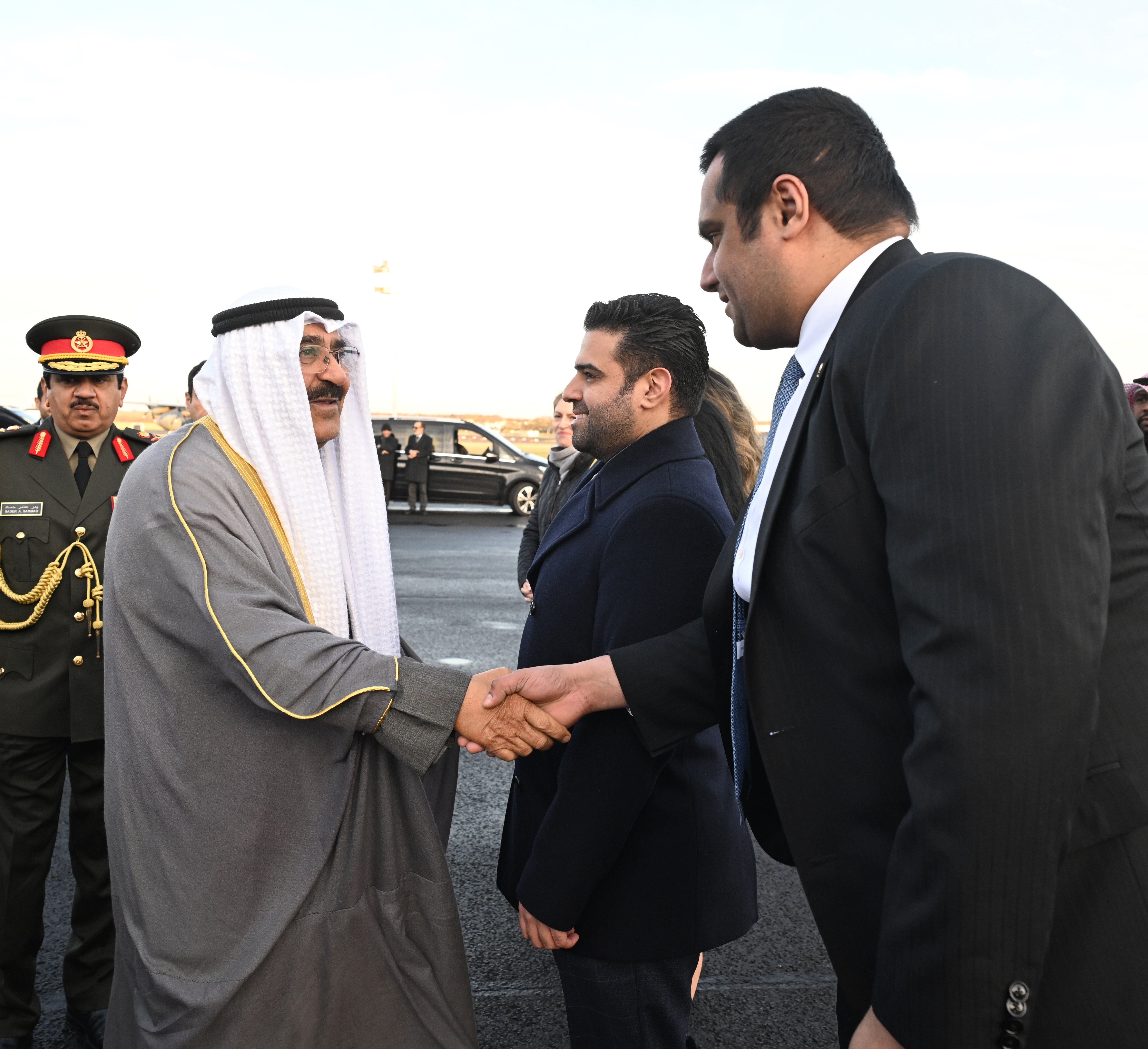 Undersecretary for Foreign Affairs at the Amiri Diwan Mazen Al-Issa, Assistant Foreign Minister for Protocol Affairs Minister Plenipotentiary Abdulmohsen Al-Zaid, and Commander of the Amiri Guard Major General Bader Al-Sahloul, were also in attendance. -